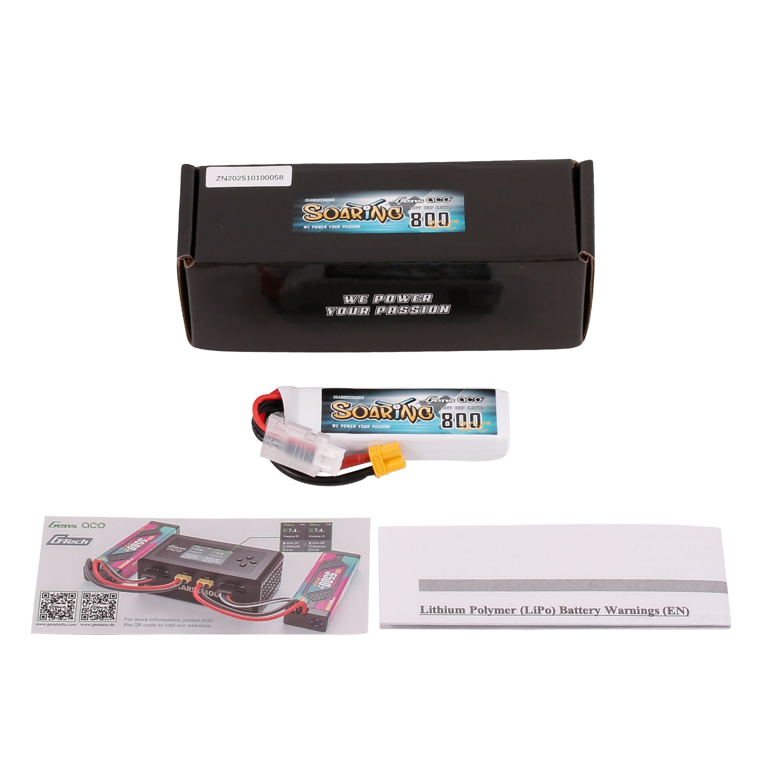 Gens ace 800mAh 2S 7.4V 30C Soaring Lipo Battery with XT30 Plug