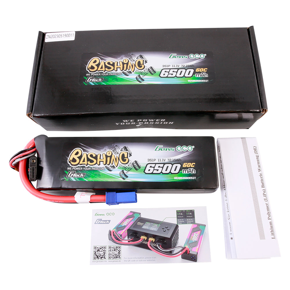 Gens ace G-Tech 6500mAh 11.1V 60C 3S Lipo Battery Pack with EC5-Bashing Series