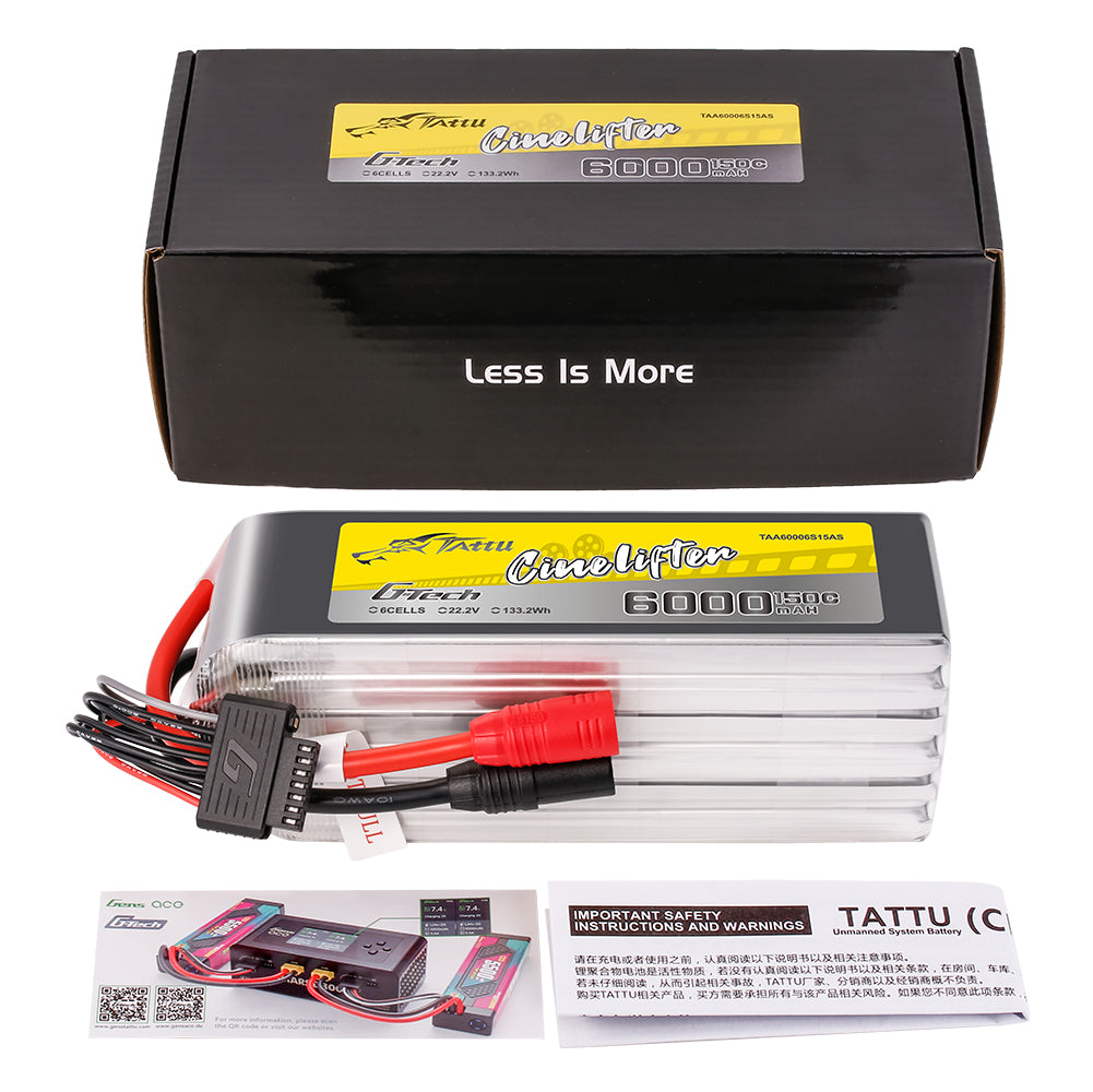 Tattu G-Tech 6000mah 22.2V 150C Lipo Battery with AS150 Plug