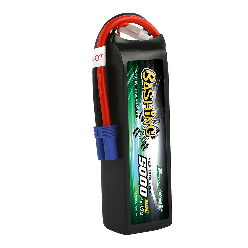 Gens ace 5000mAh 14.8V 4S1P 60C Lipo Battery Pack with EC5 Plug is Bashing Series; it is a great power for most 1:8 Scale Cars; and all ARRMA 1:8 Cars like Typhoon; Kraton; Nero; Senton; Outcast and similar cars like Losi dvxl-e.