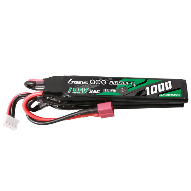 Gens ace 25C 1000mAh 3S1P 11.1V Nunchuck 3X Airsoft Gun Lipo Battery with T Plug is designed specifically to power airsoft gun.