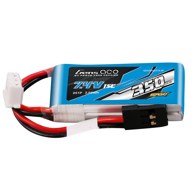 Gens ace 350mAh 7.4V 15C 2S1P Lipo Battery with JR Plug Usage: