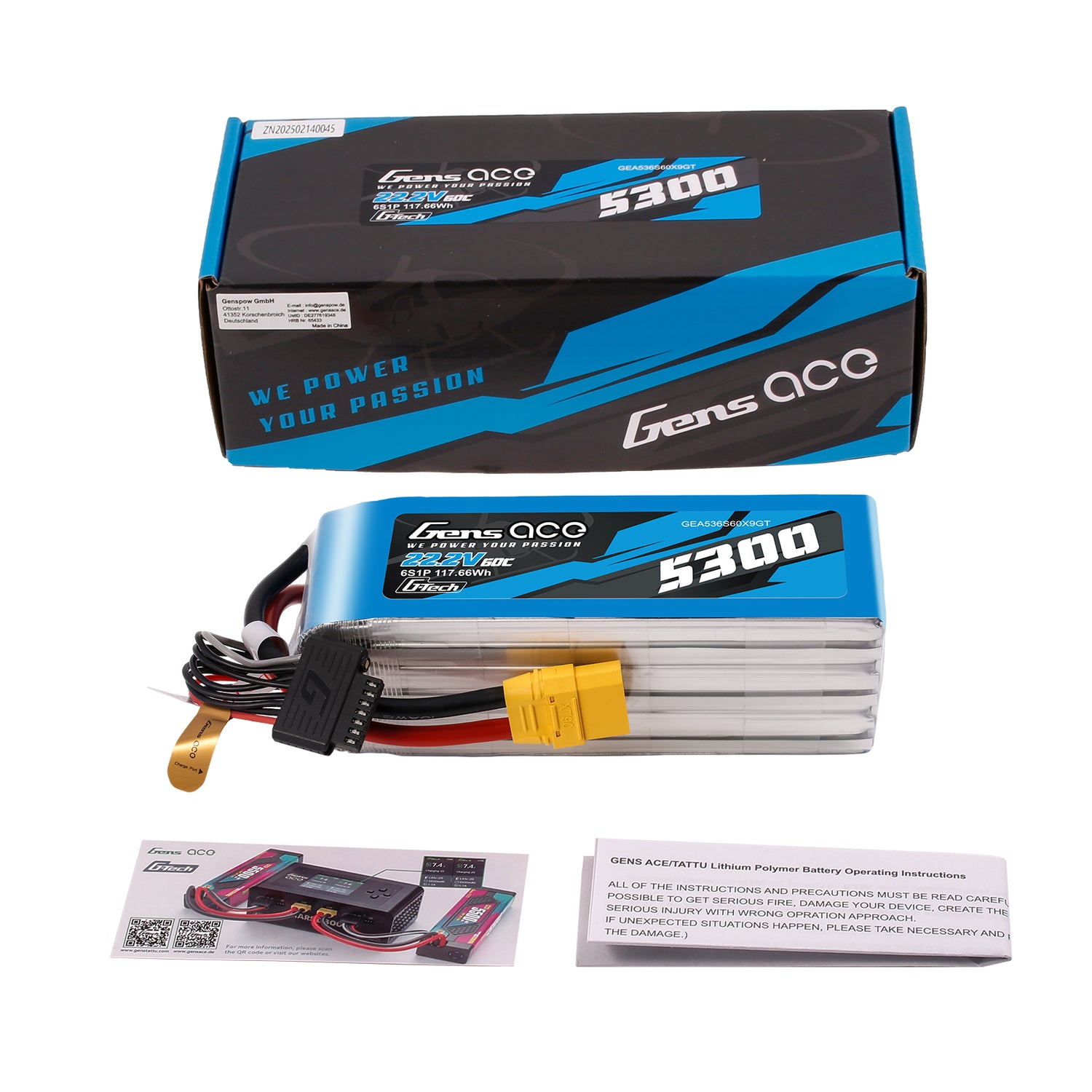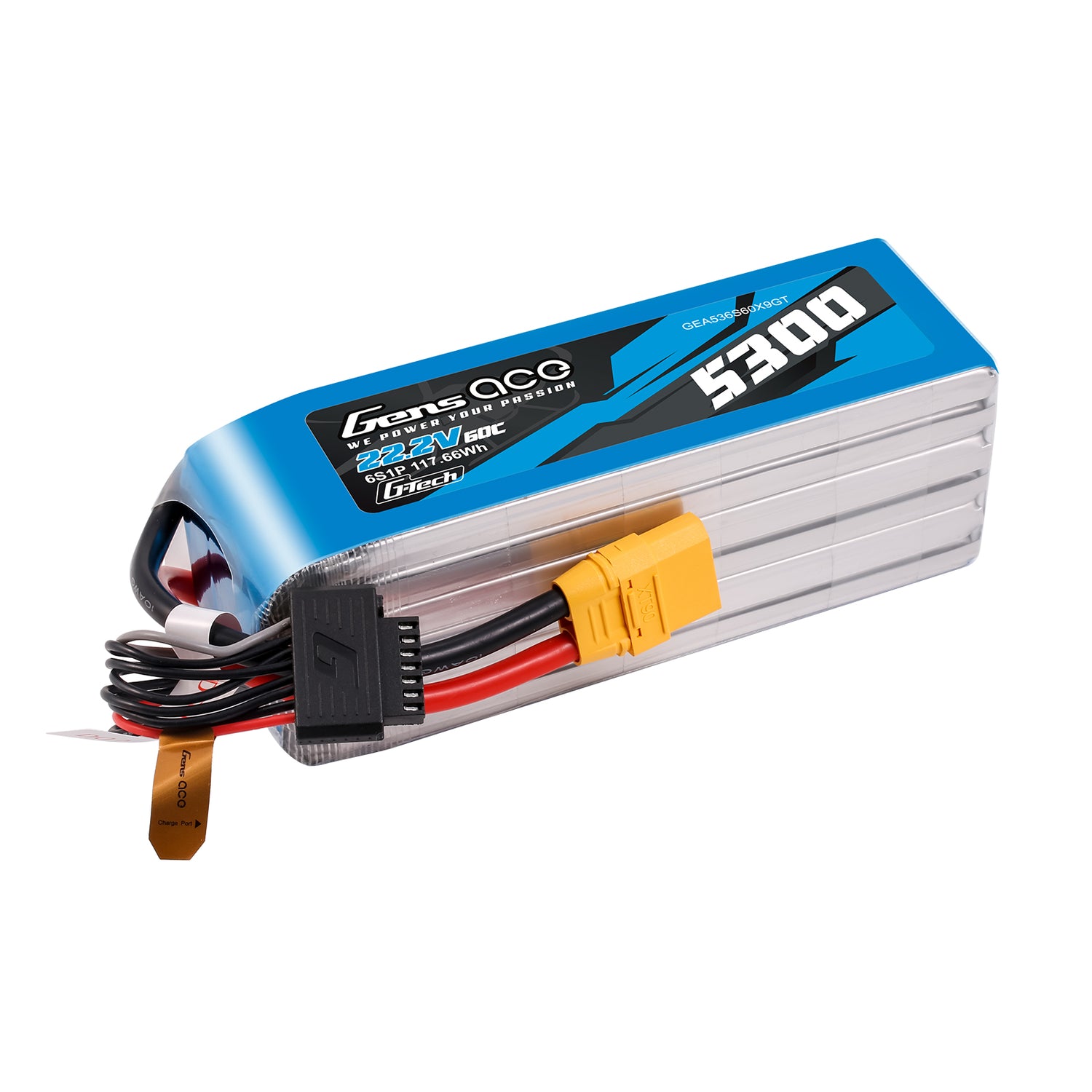 Gens Ace G-Tech 5300mAh 22.2V 60C 6S1P Battery Pack with XT90 plug