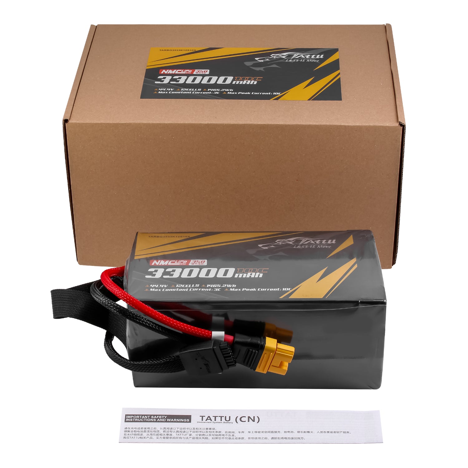 The Tattu Semi-solid state 350Wh/kg 33000mAh 44.4V 10C 12S1P Lipo Battery is a revolutionary semi-solid lithium battery, featuring high energy density and long service life.